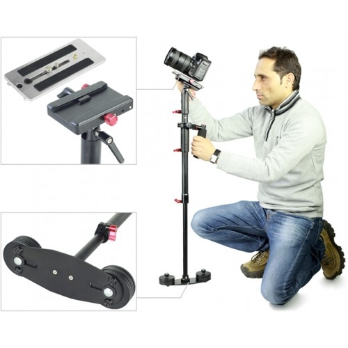 • Телескопическая стойка. Телескопическаястойкаизготовленаизвысокопрочногоиоченьлегкогоалюминия. Отличается прочностью и надежностью своей конструкцией. Длина стойки регулируется от 54 см до 80 см и фиксируется, что также дает оператору возможность наиболее точно сбалансировать камеру.