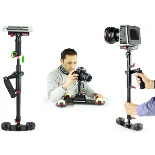 Стедикам Proaim Flycam 180 представляет собой надежную и прочную фиксирующую платформу для камеры, обеспечивает ее максимально точную балансировку. С ним оператор может абсолютно не беспокоиться о неустойчивости камеры или появлении тряски в кадре. Стедикам очень удобен в работе, он равномерно распределяет массу всего оборудования по корпусу оператора, что предотвращает появление физической нагрузки в течение рабочего дня. Его конструкция отличается своей высокой прочностью, портативностью и легкостью, что является очень важным показателем качества оборудования. Устройство позволяет вести динамичную съемку, оно абсолютно не сковывает передвижений оператора по съемочной площадке. Идеально подходит для работы с DSLR камерами.