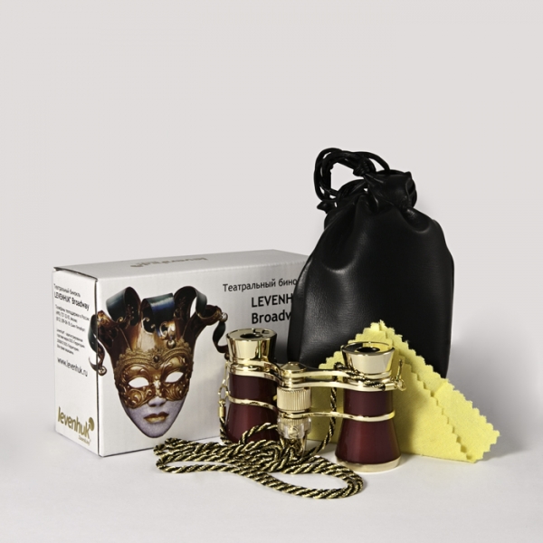 Театральный бинокль Levenhuk Broadway 325F с подсветкой и цепочкой, красный