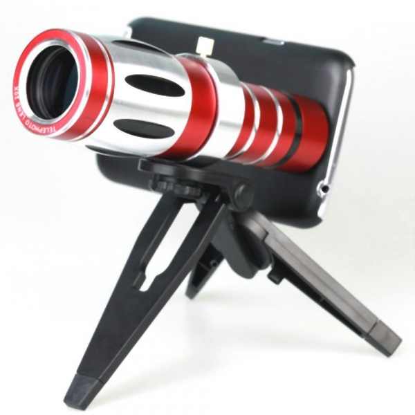 Телеобъектив для iPhone и Samsung - позволяет получить фотографии с 20-кратным увеличением. Угол обзора: 20 градусов Диаметр объектива - 21 мм Размер: 33х75 мм Вес: 271 г