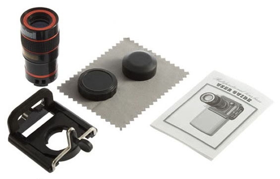 Телеобъектив для мобильных телефонов - позволяет получить фотографии с 8-кратным увеличением. Угол обзора: 7 градусов Минимальная дистанция фокусировки - 3 м Размер: 30х70 мм