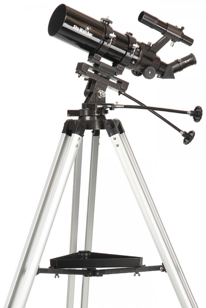 80-миллиметровый двухэлементный ахроматический объектив формирует контрастное и резкое изображение, практически свободное от хроматических аберраций. На оптические поверхности нанесено полное многослойное просветляющее покрытие. В комплект входят окуляры с фокусным расстоянием 25 мм и 10 мм. Первый применяется для обзорных наблюдений, а второй рекомендуется для более детального изучения объектов. Монтировка Оптическая труба фиксируется при помощи крепежных колец – этот способ установки позволяет подготовить телескоп к работе максимально быстро. Азимутальная монтировка AZ3 позволяет передвигать трубу плавно и точно. Монтировка снабжена механизмами тонких движений с длинными гибкими ручками.
