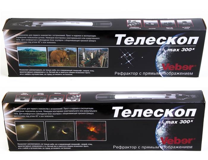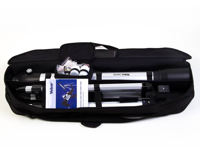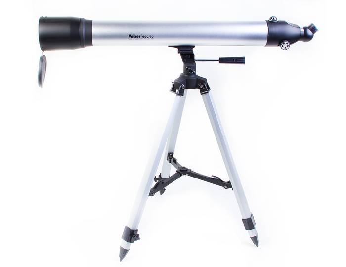 Телескоп Veber 900*90 AZ - это солидный линзовый телескоп (рефрактор), который дает четкое, контрастное изображение. Просветленный ахроматический объектив с диаметром 90мм, собирает света на 60% больше, чем 70мм и позволяет наблюдать не только небесные, но и очень удаленные земные объекты без окрашенности изображения по краю поля зрения. В этот телескоп вы сможете увидеть детали на дисках планет, кратеры Луны, многие туманности и звездные скопления (вплоть до 13 m звездной величины). Для земных наблюдений мы рекомендуем использовать окуляр PL20 , с которым увеличение телескопа будет 45х, при этом ближняя точка фокусировки составит 22,5м