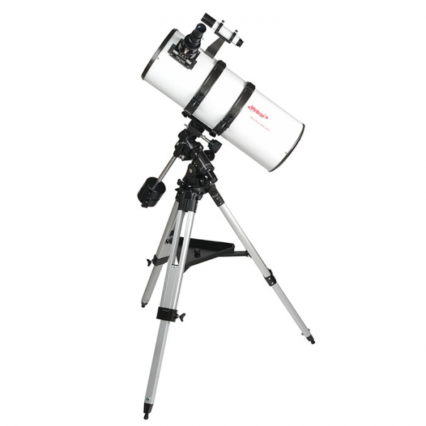Самый «могучий» в линейке Ньютоновских телескопов Veber — и с точки зрения диаметра зеркала и с точки зрения монтировки. Надежный, качественный телескоп который можно порекомендовать для серьезно увлекающихся астрономией. Ньютоновская система, продуманный дизайн, качественно изготовленные линзы и детали корпуса делают этот телескоп идеально подходящим для серьезных наблюдений (и даже исследований!) При такой апертуре его длина всего 520 мм, что делает прибор удобным для использования даже на балконе. В него можно увидеть лунные кратеры и образования диаметром около 2 км, 6–7 спутников Юпитера, даже спиральные ветви слабой галактики Водоворот, удаленный от нас на целых 35 миллионов световых лет! Однако: с окуляром PL25 вы получите увеличение 32х, с которым удобно вести наземные наблюдения. При этом ближняя точка фокусировки составит всего 10 м.
