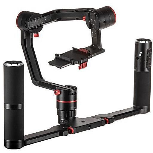 Компания Feiyu представляет профессиональную систему стабилизации трехосевого типа с максимальной нагрузкой до 2.5 кг. Данный профессиональный стедикам отлично сочетается с камерами Micro Four Thirds, Canon EOS M, Canon 5D Mark III, SONY A7RII / ILCE-7R / ILCE-5100, Panasonic LUMIX GH4/GH5, SONY NEX-5N/NEX-7 Конструкция разработана так, чтобы быстро разбираться/собираться, а при необходимости менять конфигурацию. Усовершенствованная установочная платформа обеспечивает моментальную установку камеры, а запатентованные крепления фиксируют камеру надежно и в точно установленном положении.Также в данную комплектацию входит двойная ручка, на рукояти которой находится удобный четырехпозиционный джойстик с динамическим усилием (изменяемой скоростью движения камеры), а также кнопка спуска затвора камеры (при использовании опционального кабеля). 9 универсальных креплений с резьбой 1/4" позволяют удобно расположить необходимые аксессуары (штатив, свет. микрофон и т.д.)