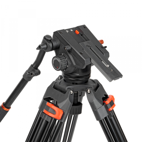 Видеоштатив GreenBean HDV Elite 755 Видеоштатив GreenBean HDV Elite 755 предназначен для стабилизации изображения при видеосъёмке видеокамерами или зеркальными фотоаппаратами весом до 4 кг. Чаша 75 мм. Ножки изготовлены из алюминиевых трубок (диаметр 16 и 25 мм), клипсы зажимов секций – из прочного ABS пластика. Максимальная высота 177 см. минимальная рабочая высота 86 см. Подготовка штатива к работе происходит быстро и легко — достаточно ослабить клипсы зажимов. Купить Видеоштатив GreenBean HDV Elite 755 можно видеографам и видеооператорам, которые работают на выезде и нуждаются в профессиональном устройстве для надежной фиксации камеры, а также возможности осуществлять съемку с плавным панорамированием по горизонтали и вертикали. Жидкостная голова для съемки видео Съёмная голова с жидкостным демпфированием и системой постоянного контрбаланса поворачивается на 360˚ по горизонтали, наклоняется на углы от -60° до +90°, имеет независимые фиксаторы панорамирования, четырёхсекционный регулятор контрбаланса и бесступенчатый регулятор вертикального демпфирования. Голова изготовлена из алюминиево-магниевого сплава. Благодаря жидкостному демпфированию все движения происходят плавно и без рывков. Дополнительно голова оснащена предохранителем площадки, кнопка которого находится на левой стороне. Также на левой стороне головы есть отверстие с системной резьбой 3/8“ для установки дополнительного оборудования или, в зависимости от резьбы на вашей камере, можно ввернуть «лишний» винт для исключения его потери. Винтовое крепление головки к штативу выполнено из стали. На быстросъёмной площадке (стандарт Manfrotto) предусмотрены винты c резьбой 1/4" и 3/8“ (входят в комплект), подпружиненный штифт и противоскользящая вставка. Площадку можно смещать вперёд и назад и фиксировать в выбранном положении. Размер площадки — 50 х 140 мм. Рукоятка Телескопическая рукоятка может устанавливаться как слева так и справа от головы. Рукоятка крепится к головке через зубчатое соединение, что полностью исключает люфт и прокручивание. Для предотвращения износа резьбы на корпусе головки предусмотрены латунные накладки. Длина рукоятки регулируется от 41 до 63 см. Три секции ног Ножки штатива вилочного типа. Секции ног надежно фиксируются клипсовыми замками. При ослаблении клипсового фиксатора — возможна регулировка зажима винтом с обратной стороны клипсы. Шестигранные ключи для регулировки в комплекте. На концах штативных ног размещены парные шипы, на которые надеваются резиновые "башмаки". Таким образом, можно выбрать необходимый тип опоры для различных условий съемки. Шипы используются вне помещений, например для устойчивости на грунте или на льду, а резиновые опоры обеспечивают отличное сцепление на скользких и гладких поверхностях для защиты поверхности пола от царапин и повреждений. Для усиления штатива используется средняя телескопическая металлическая растяжка, которая не позволяет ногам «разъезжаться». В сложенном виде ножки штатива фиксируются между собой пластиковыми фиксаторами, которые не позволяют штативу разложиться. Минимальная рабочая высота штатива составляет 86 см., максимальная высота 177 см. Пузырьковый уровень Штатив оборудован пузырьковым уровнем установленным на корпусе головы для выставления камеры в горизонтальной плоскости. При использовании штатива в 