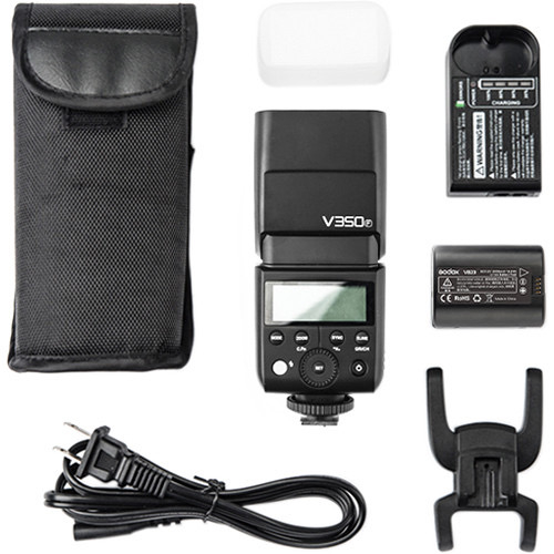 Накамерная вспышка V350F с литиево-ионным аккумулятором используется с фотокамерами FujiFilm и поддерживает протокол TTL.