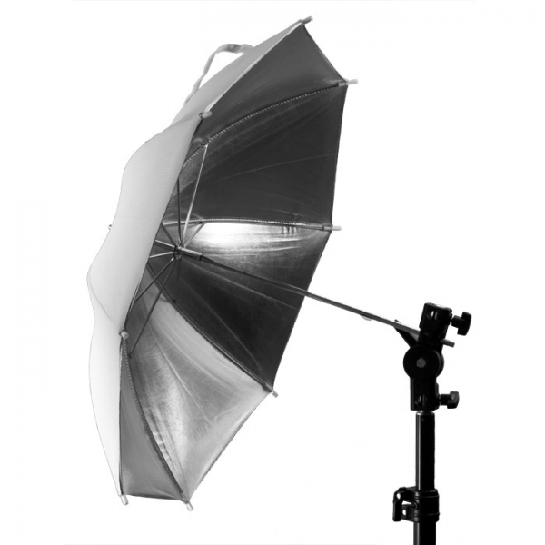Зонт отражающий 2-х сторонний (реверсибл). Цвет отражающих поверхностей: серебряный, белый. Диаметр 80 см. |